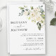 Watercolor Ivory White Floral Greenery Wedding Cartão de Convite para Casamento inclui rosas brancas de creme de marfim e verde botânico. Script Elegante De Caligrafia.