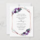 Convite para casamento em verde roxo roxo geométrico Você pode facilmente editar com seus detalhes de casamento clicando no botão "Personalizar". Apresentando um design moderno com um quadro geométrico rosa dourado, floração roxa e tipografia popular sobre fundo branco