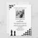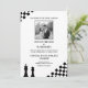 Um design ousado com um padrão diagonal, uma foto em forma quadrada e sotaques de xadrez (rei e rainha) para um aspecto estratégico e refinado.
