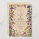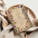 Envolva sua celebração com a beleza da natureza em flor. Este design apresenta um ornamentado de borda botânica de flores silvestres coloridas em roxo, azul, amarelo e rosa macio, colocado contra um fundo de vintagem quente. Romântico e eterno, é ideal para casamentos rurais rústicos, cerimônias de primavera ou verão, e celebrações inspiradas no jardim. Totalmente personalizável com seus detalhes pessoais para uma manutenção exclusiva.