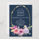 Este é o Marinho Blue Burgundy Dourado Cartão de Convites para Casamento Rosa Blush. Este recurso de cartão é um fundo azul escuro de marinho decorado com uma estrutura geométrica de ouro impressa que é aparada com elementos florais e verdes em tons de marinho, rosa, burgundy e muito mais.