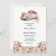Este convite impressionante apresenta um fundo cor-de-rosa pincelado e suave, adornado com um intrincado design floral, combinando sofisticação clássica com um toque moderno. Os delicados padrões florais adicionam um toque de charme de eterno, enquanto a elegante tipografia garante que seus detalhes de casamento sejam apresentados com graça e clareza.
