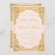 Este elegante convite de casamento de blush e ouro com ar vintage tem um quadro de ouro falso em ornamentado com decorações elegantes de ouro barroco em um fundo cor-de-rosa escamoteado. Os nomes da noiva e do noivo são escritos em um roteiro caligráfico elegante. Todo texto pode ser personalizado e tem uma cor de ouro semelhante à imagem dourada da safra. A imagem de ouro falsa e vintage baseia-se numa antiga ligação francesa ao cobrir de livro, de Georges Mercier (1885-1939) - Madame de Maupin, de Theophile Gautier, edição de 1911, agora no dominio público.
