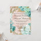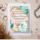 Este bonito convite de casamento floral tem um belo quadro de hortelã e flores verdes/teais ao redor das bordas sobre um fundo cor-de-água, cor-de-rosa-pincel.
