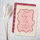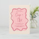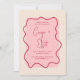 Um design de convite de casamento de quadro ondulado moderno e moderno, a cor-de-rosa magenta em negrito, uma cor rosa suave correspondente e uma moldura ondulada desenhada à mão na frente em torno do seu texto e nomes personalizados. Padrão de correspondência de linhas irregulares na parte traseira do cartão. O convite para o casamento do Boho moderno perfeito para um casamento de verão ou apenas uma celebração colorida em geral. Este é um modelo de convite de casamento totalmente personalizável. Todas as cores deste design podem ser alteradas na ferramenta design - fundo, texto e borda do quadro de onda!