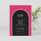 Convite De Casamento De Monograma De Arco Magenta Vibrante. Faça uma declaração ousada com este convite de casamento impressionante, com um fundo magenta rosa vibrante e um design de arco preto elegante. Os detalhes do casamento são destacados em fontes brancas nítidas, criando um contraste nítido e moderno. No verso, um monograma simples e na moda exibe as iniciais do casal, adicionando um toque personalizado. Essa design combina energia vibrante com sofisticação minimalista, perfeita para casamentos contemporâneos com uma torção divertida e ousada. O segundo detalhe sutil do 'arch' pode ser personalizado para corresponder à sua paleta de cores, dando-lhe a flexibilidade de adicionar uma linha de sotaque extra, se desejar. Totalmente personalizável, este convite permite ajustar as cores, o texto e o layout para ajustado da sua visão. Disponível como um cartão impresso ou como um download digital, este design único e dinâmico é uma forma perfeita de definir o tom para o seu dia inesquecível.