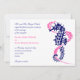 Marinho e convite para casamento cor-de-rosa-quente, azul-marinho, que apresenta um marinho cavalo-marinho azul e algas rosa-pinceladas em fundo branco. Esta design de modelo é parte de um casamento perfeito para um casamento de verão na praia. É um modelo completamente personalizável.