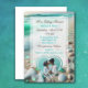 Convites de casamento com bonito vidro azul e lacrimogêneo numa praia arenosa com ondas oceânicas. Carregue sua foto na área de personalização.