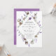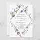 Convite de casamento de outono/inverno com lavanda pintada à mão e algodão na moda com fundo lavado em aquarela roxa.