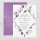 Convite de casamento de outono/inverno de lavanda e algodão pintado à mão com tendência, com fundo roxo lavado em aquarela.