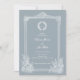 Defina um tom refinado e romântico para o seu dia especial com este convite de casamento elegante emoldurado em azul poeirado vintage, apresentando uma delicada borda botânica em linha branca, uma moldura decorativa sofisticada e um monograma personalizado no centro. Este design atemporal combina a elegância clássica do casamento com um toque de charme campestre francês, tornando-o a introdução perfeita para a celebração do seu casamento.