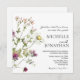 O convite de casamento cristão retrata lindas flores silvestres florais de cor aquosa com simples flores e verde de cor azul, rosa, lavanda e branco botânico. Apresenta uma introdução inspiradora, "Deus levou duas vidas a enveredar por um caminho." Boa escolha para primavera e casamentos de verão. Se há algo que você não vê ou se você quer mudar, por favor, entre em contato comigo com o botão de bate-papo na página Zazzle.