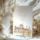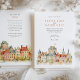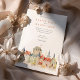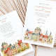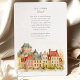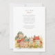 Anuncie seu dia especial com este encantador convite para casamento, com o icônico hotel Château Frontenac e a velha vila pitoresca da cidade de Québec. A frente apresenta o majestoso castelo com sua colorida linha do horizonte e as charmosas casas no primeiro plano, renderizadas em um estilo aquoso romântico e macio. A cena captura a história e a beleza desse destino canadense. O verso, projetado para "Os Detalhes Mais Finos", oferece outra visão. Este convite é perfeito para um casamento de destino na cidade de Québec, uma celebração de outono ou inverno, ou para qualquer casal que aprecie história, beleza arquitetônica e uma estética europeia clássica.