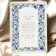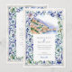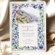 Traga seus convidados para as margens ensolaradas de Itália com este convite de casamento. Perfeitamente adequado para um casamento de destino, este design apresenta uma ilustração impressionante da aquarela de uma aldeia pitoresca de Amalfi, com edifícios charmosos a escorrer penhascos para se encontrar com o mar azul sereno. A cena é maravilhosamente enquadrada por uma intrincada fronteira inspirada pelos tradicionais azulejos italianos Majolica. Envolventes de aquarela deliciosos, pintados à mão em tons de azul clássico, verde-sábio e amarelo-mudo criam um quadro elegante e artístico. Combinar o panorama cênico e o padrão do azulejo do ornamentado evoca uma sensação de romance europeu eterno. Seus detalhes de casamento são apresentados em um sofisticado emparelhamento de fontes clássicas de serifa e escrita graciosa, completando este design verdadeiramente especial.