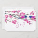 Vintage Pink Yseta e Marinho Blue Love Birds Sentados em um Branch Blossom Cereja Convites de Casamento