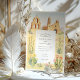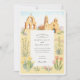 Celebre o seu casamento no estilo do deserto eterno com a cor d'água El Paso, o convite de casamento do Texas com cactos vibrantes, flores silvestres e uma igreja de missão tradicional enquadrada por montanhas brilhantes do deserto. Perfeito para casais planejando uma cerimônia inspirada no Sudoeste, este design de convite combina elegância natural com charme local. Personalize facilmente o texto para seu dia especial e crie um anúncio memorável para seus convidados.