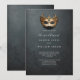 Entra numa mascarada encantadora com este Convite de Casamento de Tema Mascarada da 'Coleção de Reivindicações Teatrais'. Escolha entre vários fundos — azul, roxo real, verde, marrom-ferrugem, negro de carvão e vermelho de teatro — que sirvam como canvas para uma espantosa máscara de mascarada veneziana no efeito 3D metálico do ouro. Este convite traz um toque de mistério e elegância, colocando a palco para uma celebração de casamento como nenhuma outra.