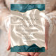 As bordas superior e inferior deste elegante convite de casamento moderno apresentam uma cor azul-lacrimejante agata borda cortada com falso brilho dourado. O texto personalizável combina escrita manual, fontes sans serif e itálicas em cinzas de carvão em uma imagem de fundo da seda de marfim. O verso apresenta um agato de feltro correspondente e design de seda de marfim.