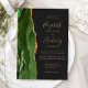 A borda esquerda deste elegante convite de casamento moderno apresenta um caçador de aquarela verde agata borda com falsa brilho dourado. O texto personalizável combina manuscrito dourado, fontes em copperplate e itálico em um fundo fora de preto. O verso apresenta um design verde e dourado correspondente.