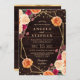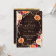 Elegante Boho Watercolor Vermelho e Laranja caem flores e design de folhagem com estrutura geométrica dourada, confete de brilho dourado e fundo de madeira russa