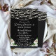 Casamento de Luzes Brancas Rosas Negra - Este elegante convite de casamento preto e branco, com lindas luzes de cordas e rosas brancas com brilho de diamante pode ser personalizado com sua informação de Casamento.