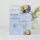 Eu espero que vocês gostem desta coloração d'água azul indigo e amarela mostarda em um fundo de madeira azul empoeirado com cordas de luz. Os convites e produtos correspondentes estão disponíveis neste conjunto de coleções.