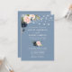 O Cartão de Convite para Casamento das Luzes das Cordas de Corda d'Água Elegante moderno Azul e Cor de Rosa Dusty inclui rosas cor-de-rosa, rosas azuis e verde.