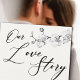 Descubra um momento de beleza serena com esse convite romântico de casamento preto e branco moderno, embelezado por delicadas orquídeas brancas desenhadas à mão. Este convite evoca um senso de calma e tranquilidade, apelando à noiva moderna que deseja um casamento infuso de elegância eterno e harmonia pacífica. Um moderno romântico, elegante design de vassoura que apresenta uma tipografia simples e moderna e sotaques de caligrafia moderna, bem como o título "Nossa História do Amor".