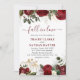 Um elegante convite para o casamento temático do outono, que inclui o título "apaixonar-se" em escrita de caligrafia, burgundy rustica e flores brancas com verde escuro e outras folhagem botânica, abóboras de água de cor branca e esbranquiçada e dourada e um modelo de casamento fácil de personalizar.