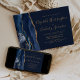 Convites Casamento de Agata Azul Dourada Elegante Marinho