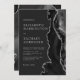 A borda direita deste elegante convite de casamento moderno apresenta uma aquarela preta, borda agitada com falso brilho prateado. O texto personalizável combina fontes de cinza prateada se, copperplate e itálico estiverem em um fundo preto de ardósia. O verso apresenta um design de agata preto e prateado correspondente.