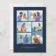 A borda esquerda deste elegante convite de casamento moderno apresenta um marinho azul de aquarela agata borda aparada com falso brilho dourado. O texto personalizável combina manuscrito dourado, fontes em copperplate e itálico em um fundo azul marinho. O verso fornece espaços para 5 fotos (3 horizontais, 1 quadrados e 1 verticais) e espaço para o seu site de casamento URL ou outra mensagem breve.