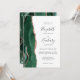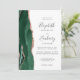 A borda esquerda deste elegante convite de casamento moderno apresenta uma esmeralda verde aquarela agate borda aparada com falsa rosa dourada. O texto personalizável combina a escrita manual de cinzas de carvão, as fontes em copperplate e itálico em um fundo branco. O verso apresenta um design emerald verde e rosa dourado.