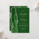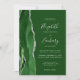 A borda esquerda deste elegante convite de casamento moderno apresenta um caçador de aquarela verde agata borda com falso brilho prateado. O texto personalizável combina manuscrito, copperplate e fontes itálicas em cinzas prateadas em um fundo verde caçador. O verso apresenta um design verde e prateado correspondentes.