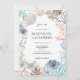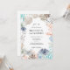 Convide seus hóspedes para celebrar seu amor com um toque de chorona à beira-mar! Este convite para o casamento apresenta uma design de aquarela pastel macia, acesa com azuis serenes calmantes do oceano e coral, e as cores cremosas dos conchas e estrelas-do-mar. Estrelas, corais e conchas deliciosas estão espalhados pela design, criando um sentimento romântico e etéreo. Perfeito para um casamento na praia de destino ou uma celebração que captura a beleza do mar, este convite dá o tom para um evento inesquecível. A grama dos pampas adiciona uma sensibilidade de boho à design. Suave, calmante e sereno.