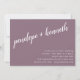 Este convite de casamento contemporâneo apresenta uma composição horizontal minimalista e uma bela caligrafia escrita em roxo empoeirado de ameixa.