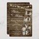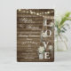 Escada de madeira em vinhaça com letras LOVE e um cheio de jarro de latas de rosas brancas antigas decoram esta suíte rustica de convite para casamento. Luzes cintilantes brilhantes adicionam encanto extra sobre o fundo da madeira do celeiro escuro.