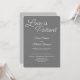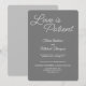 Convite de casamento elegante e moderno na cor cinza. Este design apresenta uma tipografia moderna para as palavras "O amor é paciente". Personalize este anúncio de casamento que também serve como convite de recepção de casamento com os nomes dos noivos e todos os detalhes da festa sobre a troca de votos e festa de casamento. Este layout elegante e sofisticado é fácil de personalizar.