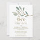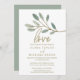 Este cartão de convite para casamento "amor" com eucalipto veado em ouro é perfeito para um casamento elegante. A design simples e delicada apresenta uma falso brilho dourado que ensola os ramos das folhas verdes de azeitona. Nota: Este design não apresenta brilho de ouro real. É um gráfico de alta qualidade feito para se parecer com um martelo de ouro.