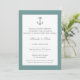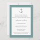 Marque seu grande dia com este elegante Convite Simples de Casamento de Âncora Náutica Teal, com um eterno de âncora e um design chic costeiro refinado. Misturando lindamente a elegante escrita e a tipografia moderna, este convite destaca os nomes da noiva e do noivo ao lado dos detalhes do seu casamento em um layout limpo e sofisticado. Perfeito para celebrações marítimas ou beachside, esta design captura o espírito de um casamento costeiro ao adicionar um toque de encanto clássico. Um começo incrível para sua suíte náutica de papelaria de casamento.