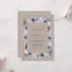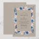 Este design apresenta uma paleta sofisticada de taupe, azul aço e pêssego suave. Anêmonas pintadas à mão em aquarela e folhagens delicadas criam uma atmosfera romântica. O fundo terroso proporciona um ambiente quente e rústico que é perfeito para um evento inspirado no boêmio. Pétalas azuis profundas contrastam lindamente com os tons neutros suaves.