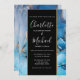 Convite de casamento de assinatura elegante, com nomes de estilo de assinatura, este convite de casamento de na moda pode ser personalizado com suas informações em caracteres chicos em uma banda de ouro e preto e fundo de agata azul. Projetado por Thisnotme©