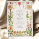 Anuncie seu casamento com este convite requintado, com uma apresentação sofisticada e moderna sobre a estética de Art Nouveau. A frente apresenta uma disposição graciosa de elementos florais estilizados, incluindo grandes, suavemente coloridos, redondos, quase oculares, em amarelos quentes e pinças-pregos, ao lado de delicadas formas de broto, todas ligadas por caules finos e fluidos. Estes elementos são belamente colocados contra um fundo suave e enquadrados por uma fronteira suave e orgânica. O verso, desenhado para "Os Detalhes Mais Finos", ecoa esse estilo refinado, apresentando um arranjo floral estilizado semelhante, com espircas adicionais de flores lavanda/púrpura e vermelha/rosa. Esse convite é criado com uma delicada técnica de aquarela, permitindo um efeito macio e luminoso. É perfeito para casais que buscam um design único, artístico e elegante para o seu casamento, ecoando o romance eterno da estética da safra com uma reviravolta moderna, e é adequado para vários temas, incluindo jardim, vintagem e casamentos inspirados na arte.