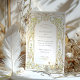 Este luxuoso convite para o casamento apresenta uma fronteira botânica refinada, enfeitiçada com videiras de ouro entrelaçadas e flores de aquarela. Com uma disposição simétrica e um belo trabalho de rolagem, o design inspira-se na iluminação clássica europeia e na decoração antiga do palácio. As margaridas cor-de-rosa, os azulejos e as flores escuras florescem ao longo da moldura, realçadas por sotaques de ouro suave e curvas elegantes de folha. O layout frontal é centrado na tipografia do eterno com talento romântico, realçado por um toque monograma em cada lado. Ao contrário, um design de padrão opulente de cheio espelha um afresco de teto ou tapeçaria histórica, elevando a apresentação geral à simetria ornamental e à elegância floral. Perfeito para casamentos formais, assuntos de jardim, ou casais desenhados para estilos de safra regulares, este design evoca elegância e artista com todos os detalhes.