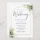 Esta elegante vegetação botânica deixa um convite para casamento em arco dourado pode ser personalizado com suas informações em tipografia quic com seus detalhes do site de casamento e seu código QR no verso. Projetado por Thisnotme©