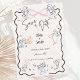 Este estilo trendy desenhado para o casamento ilustrado salve a data em que o convite apresenta uma borda ondulada e cupidos giros de cherub. O design bicho-branco e peculiar inclui fontes escritas à mão e rabiscos de celebração. Estilo preto e branco com um toque de cor para um convite de casamento moderno e moderno.