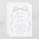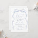 Cartões de convite de casamento elegantes apresentam arco de fita desenhado manualmente com fontes modernas de script manuscrito em azul empoeirado, limpo e simples. Excelente para casamento romântico moderno, casamento maravilhoso e divertido, casamento casual elegante. Veja todas as peças correspondentes na coleção.