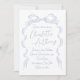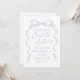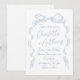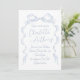 Cartões de convite de casamento elegantes apresentam arco de fita desenhado manualmente com fontes modernas de script manuscrito em azul empoeirado, limpo e simples. Excelente para casamento romântico moderno, casamento maravilhoso e divertido, casamento casual elegante. Veja todas as peças correspondentes na coleção.