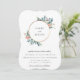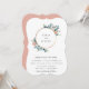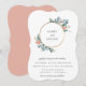 Lindas folhas de jardim em aquarela e flores delicadas em moldura de aro dourado, convite de casamento. O verso do cartão apresenta cor rosa brilho dourado sólido.
