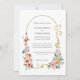 Borda graciosa de arco de ouro com rolhas elegantes embelezadas com flores silvestres pastel de cor bóvica romântica a azul pálido, rosa e amarela. Esta coleção encantadora é o complemento perfeito para o seu casamento com Primavera, Verão ou jardim.